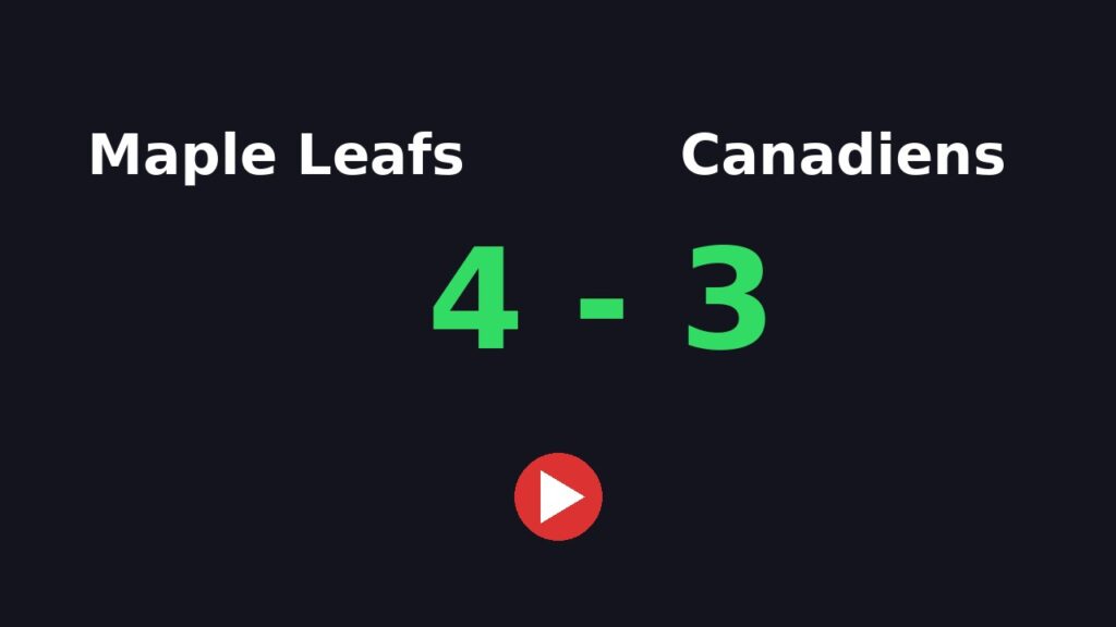 Pertandingan Ice Hockey antara Maple Leafs vs Canadiens berlangsung seru dengan banyak gol. Maple Leafs berhasil meraih kemenangan dengan skor 4 – 3. Tonton video highlight untuk melihat semua momen penting.