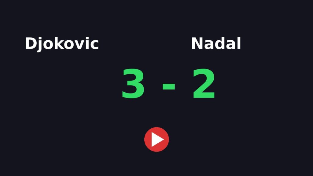 Pertandingan Tennis antara Djokovic vs Nadal berlangsung seru dengan banyak gol. Djokovic berhasil meraih kemenangan dengan skor 3 – 2. Tonton video highlight untuk melihat semua momen penting.