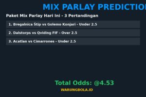 ⚠️ Disclaimer: Prediksi mix parlay ini bersifat informasi dan edukasi. Kami tidak bertanggung jawab atas kekalahan taruhan. Pastikan untuk bermain di situs terpercaya dan bertanggung jawab. Info lebih lanjut kunjungi WarungBola.