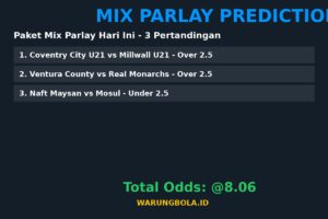 Secara keseluruhan, paket mix parlay ini menawarkan kombinasi menarik dengan potensi keuntungan yang cukup besar. Oleh sebab itu, analisis yang digunakan dapat menjadi referensi sebelum mengambil keputusan.