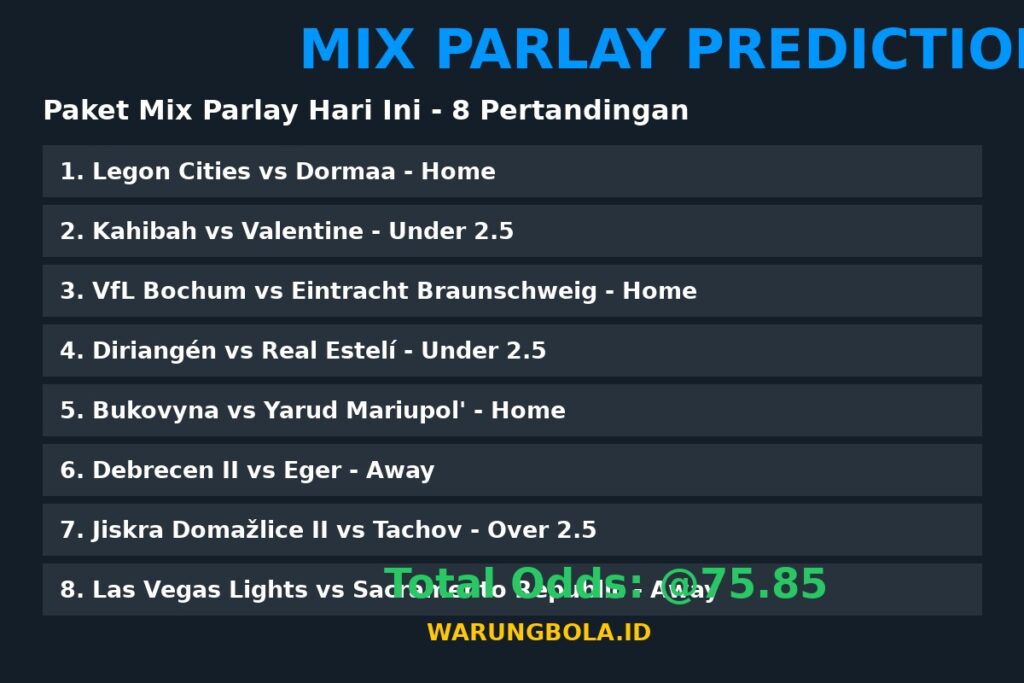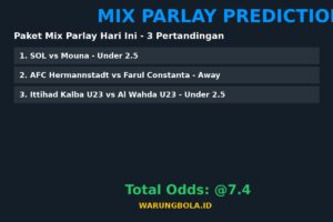 โš ๏ธ Disclaimer: Prediksi mix parlay ini bersifat informasi dan edukasi. Kami tidak bertanggung jawab atas kekalahan taruhan. Pastikan untuk bermain di situs terpercaya dan bertanggung jawab. Info lebih lanjut kunjungi WarungBola.