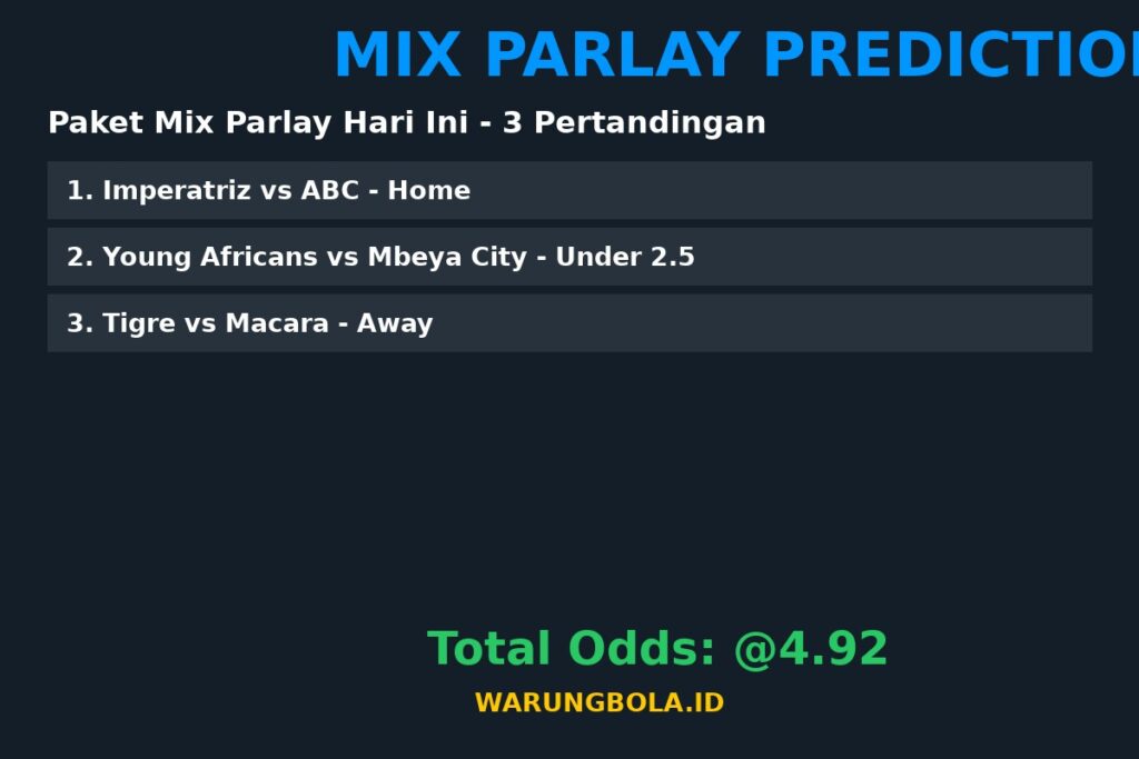 ⚠️ Disclaimer: Prediksi mix parlay ini bersifat informasi dan edukasi. Kami tidak bertanggung jawab atas kekalahan taruhan. Pastikan untuk bermain di situs terpercaya dan bertanggung jawab. Info lebih lanjut kunjungi WarungBola.