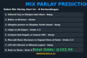 ⚠️ Disclaimer: Prediksi mix parlay ini bersifat informasi dan edukasi. Kami tidak bertanggung jawab atas kekalahan taruhan. Pastikan untuk bermain di situs terpercaya dan bertanggung jawab. Info lebih lanjut kunjungi WarungBola.