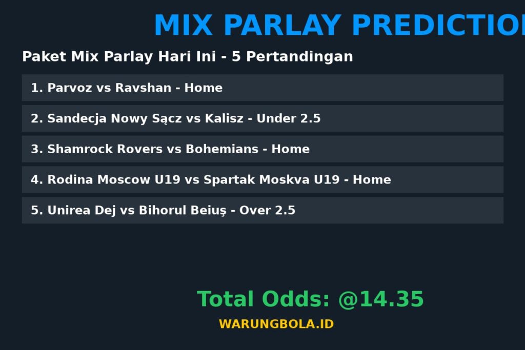 ⚠️ Disclaimer: Prediksi mix parlay ini bersifat informasi dan edukasi. Kami tidak bertanggung jawab atas kekalahan taruhan. Pastikan untuk bermain di situs terpercaya dan bertanggung jawab. Info lebih lanjut kunjungi WarungBola.
