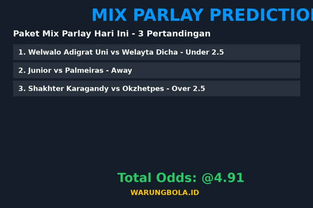 ⚠️ Disclaimer: Prediksi mix parlay ini bersifat informasi dan edukasi. Kami tidak bertanggung jawab atas kekalahan taruhan. Pastikan untuk bermain di situs terpercaya dan bertanggung jawab. Info lebih lanjut kunjungi WarungBola.