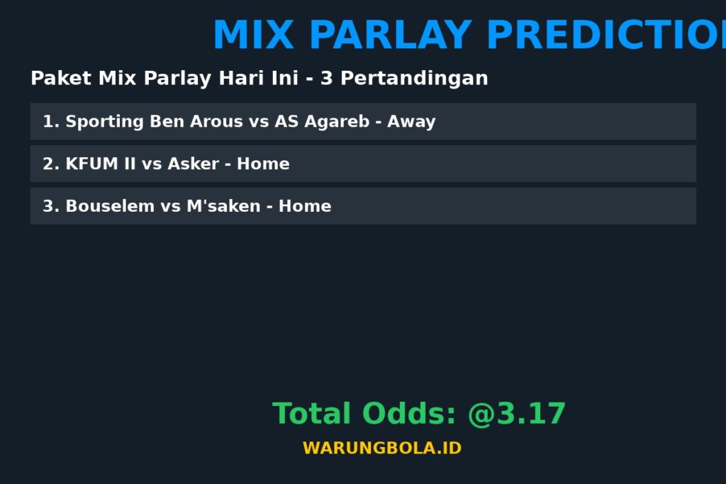 ⚠️ Disclaimer: Prediksi mix parlay ini bersifat informasi dan edukasi. Kami tidak bertanggung jawab atas kekalahan taruhan. Pastikan untuk bermain di situs terpercaya dan bertanggung jawab. Info lebih lanjut kunjungi WarungBola.