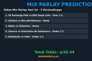 Disclaimer: Prediksi mix parlay ini bersifat informasi dan edukasi. Kami tidak bertanggung jawab atas kekalahan taruhan. Pastikan untuk bermain di situs terpercaya dan bertanggung jawab.