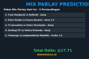 โš ๏ธ Disclaimer: Prediksi mix parlay ini bersifat informasi dan edukasi. Kami tidak bertanggung jawab atas kekalahan taruhan. Pastikan untuk bermain di situs terpercaya dan bertanggung jawab. Info lebih lanjut kunjungi WarungBola.