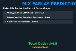 ⚠️ Disclaimer: Prediksi mix parlay ini bersifat informasi dan edukasi. Kami tidak bertanggung jawab atas kekalahan taruhan. Pastikan untuk bermain di situs terpercaya dan bertanggung jawab. Info lebih lanjut kunjungi WarungBola.