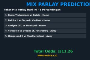 โš ๏ธ Disclaimer: Prediksi mix parlay ini bersifat informasi dan edukasi. Kami tidak bertanggung jawab atas kekalahan taruhan. Pastikan untuk bermain di situs terpercaya dan bertanggung jawab. Info lebih lanjut kunjungi WarungBola.