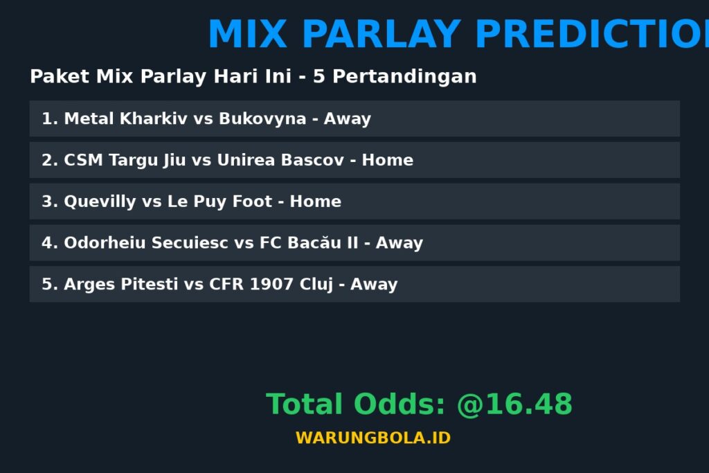 ⚠️ Disclaimer: Prediksi mix parlay ini bersifat informasi dan edukasi. Kami tidak bertanggung jawab atas kekalahan taruhan. Pastikan untuk bermain di situs terpercaya dan bertanggung jawab. Info lebih lanjut kunjungi WarungBola. Gunakan prediksi ini sebagai referensi dan selalu bertaruh dengan bijak. Kunjungi WarungBola untuk prediksi mix parlay terbaru setiap hari.